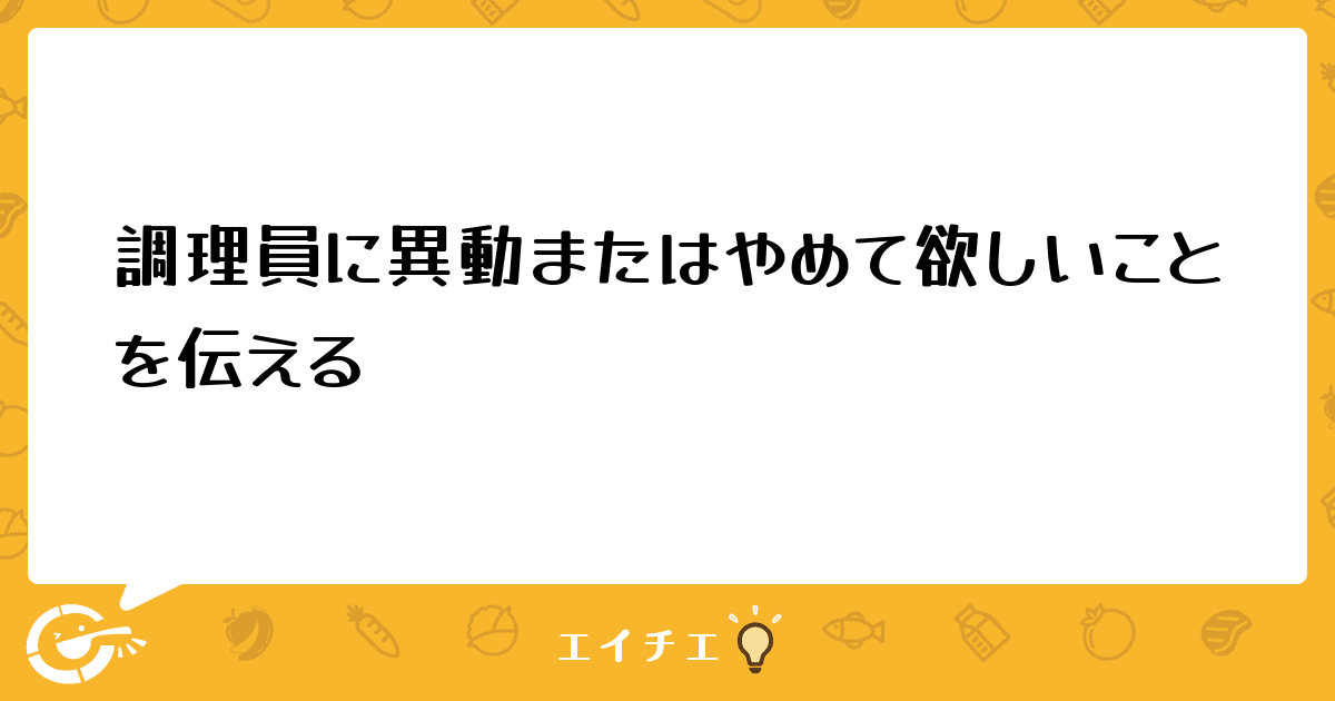 先日、異物混入があり私がその日の作り担当(問題ある1人)に「どうして入ってしまったのか?」など経緯を聞いていたらその人に「なんでこんなことになったか分かるか?人が足りないからだ。」と始まり、それに続いてもう1人の問題人が「もう、人入れてって上に言って、人が足りないから急かせかするし、盛り付けも雑になるし、身体壊す」強い口調で言われ、今まで散々言われてきて我慢してたのが爆発しそうになったのを抑えて、施設の部長に異物混入の報告に行きました。本人たちは、人員不足だから異物混入したと言ってますと伝えました。それから色々人員について、厨房の環境について話し、その日は私の機嫌が悪いまま過ごしました。