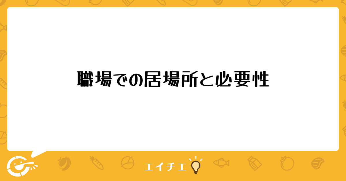 入職してから数ヶ月経ち、職場で自分の居場所が無いように感じています。