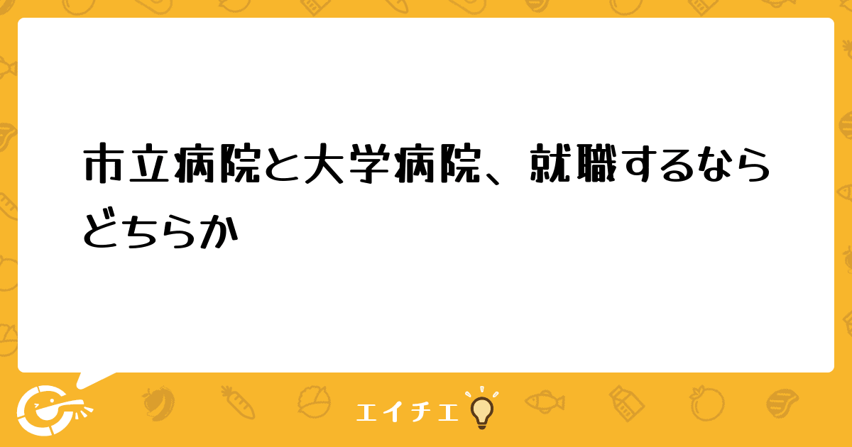 個人的には大学病院のほうが管理栄養士として成長できるのでは、と考えていたのですが、周りの大人から圧倒的に市立病院を勧められ、迷っています。また、病院勤務をしている両親からも、大学病院は人間関係が難しい傾向だよと言われています。