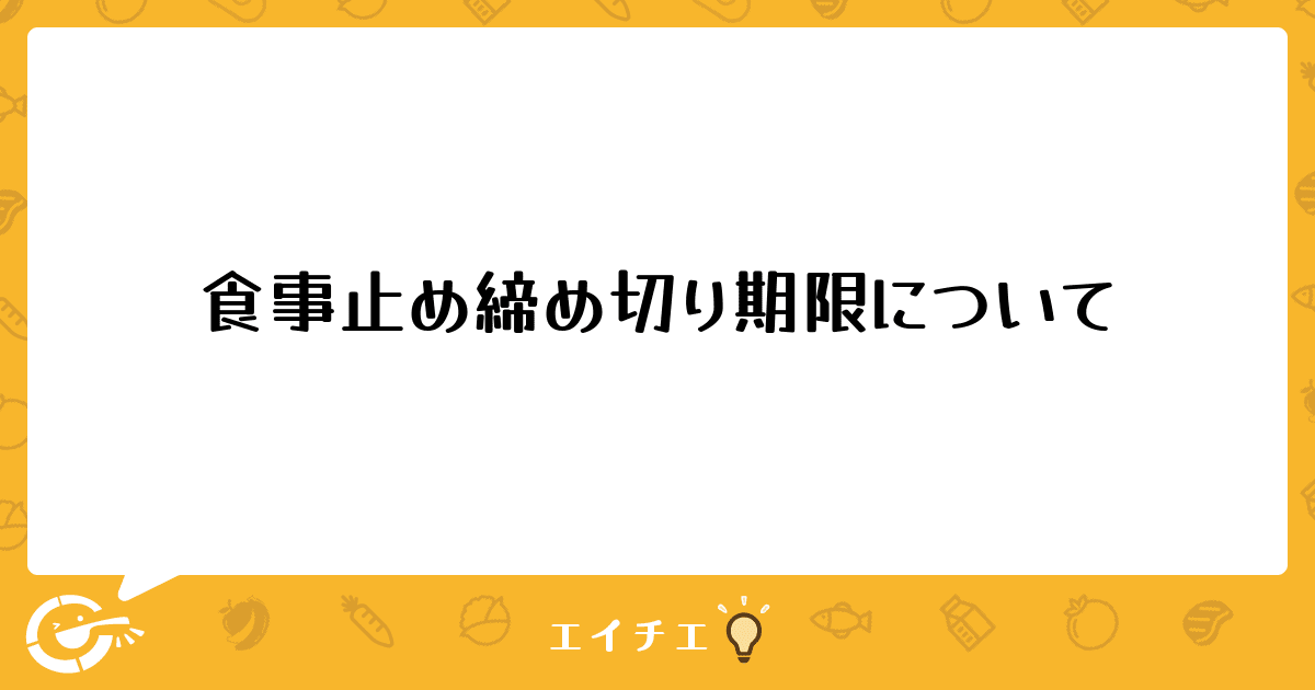 施設で食事レクなどをする場合事前に食事止めを依頼するのですが、皆さんの施設の締め切りは何日前ですか?(1、2食ではなく10食以上の食事をとめる場合)
