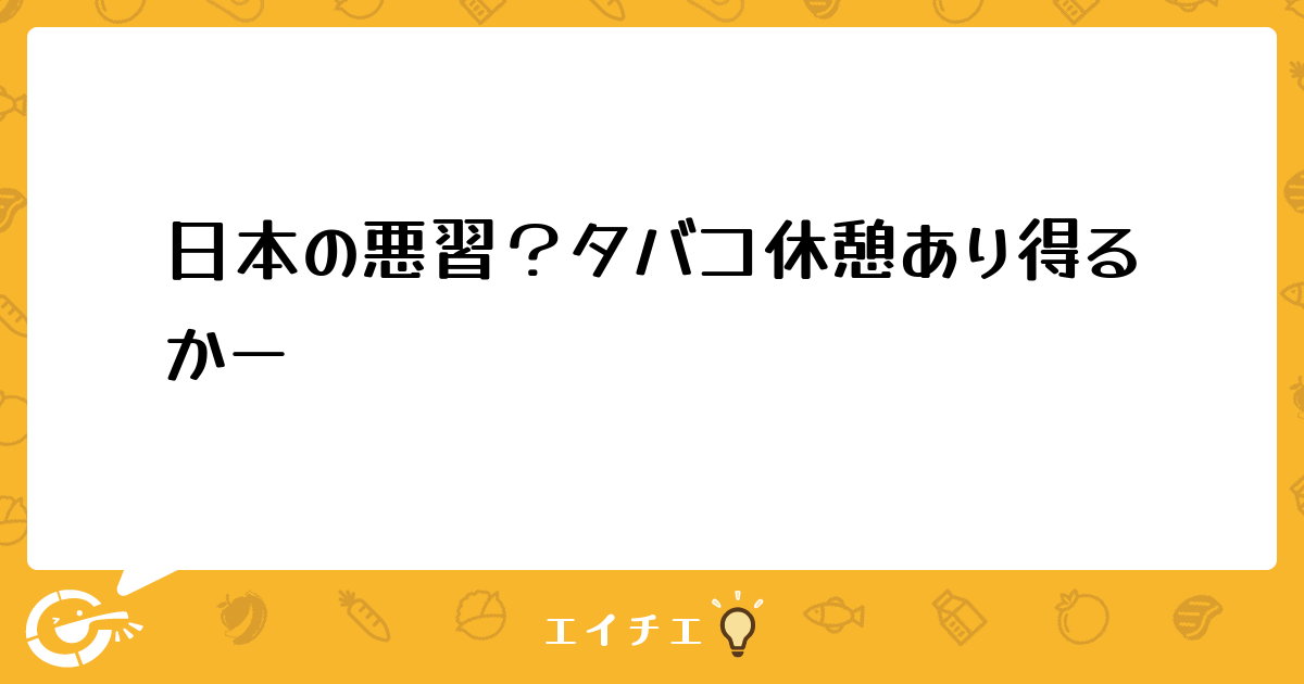 些か怒り心頭でして タバコ休憩が、許される昭和な会社に頭いております。