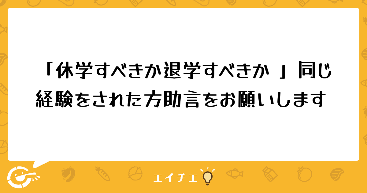私と同じように病気で休学や退学をされた方、その時の気持ちやその後の生活について、ぜひ助言をいただけないでしょうか。