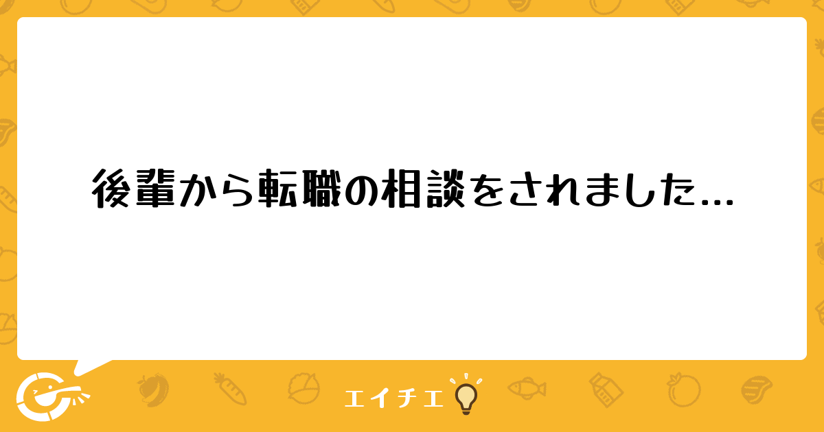今年度で定年退職する職員(ベテランの調理師)もいるなか、新規の採用職員はおらず来年度から職員が不足するな~と考えていた矢先、一人の後輩から転職を考えているが迷っている。と相談を受けました。