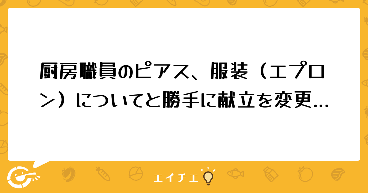 ピアス、ユニフォームを指摘しただけで?とは思いましたが、特定給食施設の厨房でピアスOK、カフェエプロンOKという職場ってあるのでしょうか?
