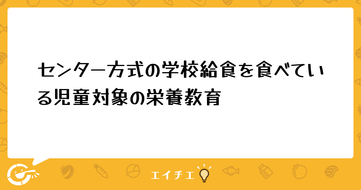 今度、栄養教育についての課題があるのですが、それは「センター方式の学校給食を食べている児童を対象とした栄養教育」というものです。