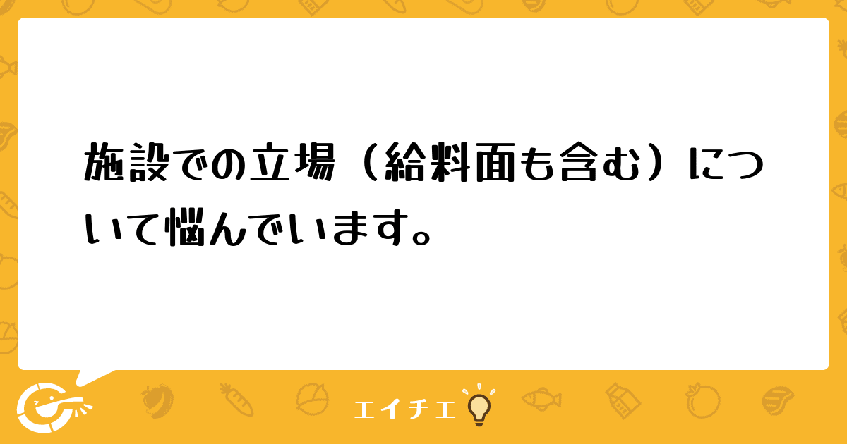 実働4年目、男の管理栄養士です。福祉・介護施設だと給料が上がりづらいと感じていますが、皆様はいかがでしょうか?施設での立場も微妙で、私の施設は委託会社が入っており、私は施設の管理栄養士ですが、正直言って施設長だけが必要としていて、事務所の人たちとの人間関係でぎくしゃくしています。挨拶をしても返事もしてもらえず、朝起きるのが憂鬱になります。年齢的な制限もあり公務員試験は受けられません。(過去2回落ちてしまいました)やる気だけはあります!!チャンスさえあれば異動したいとも考えていますが、難しいでしょうか?地域の周りの栄養士さんは公務員さんばかり、女性ばかりで家計を支えていかなければいけない立場にあると思うと、気ばかり焦ってしまいます。どのようにしたらよいのか皆目見当もつきません。一言でスキルアップといっても、まず何をすべきなのか優先順位がわかりません。質問ばかりで申し訳ありませんが、皆様のご意見よろしくお願いします。