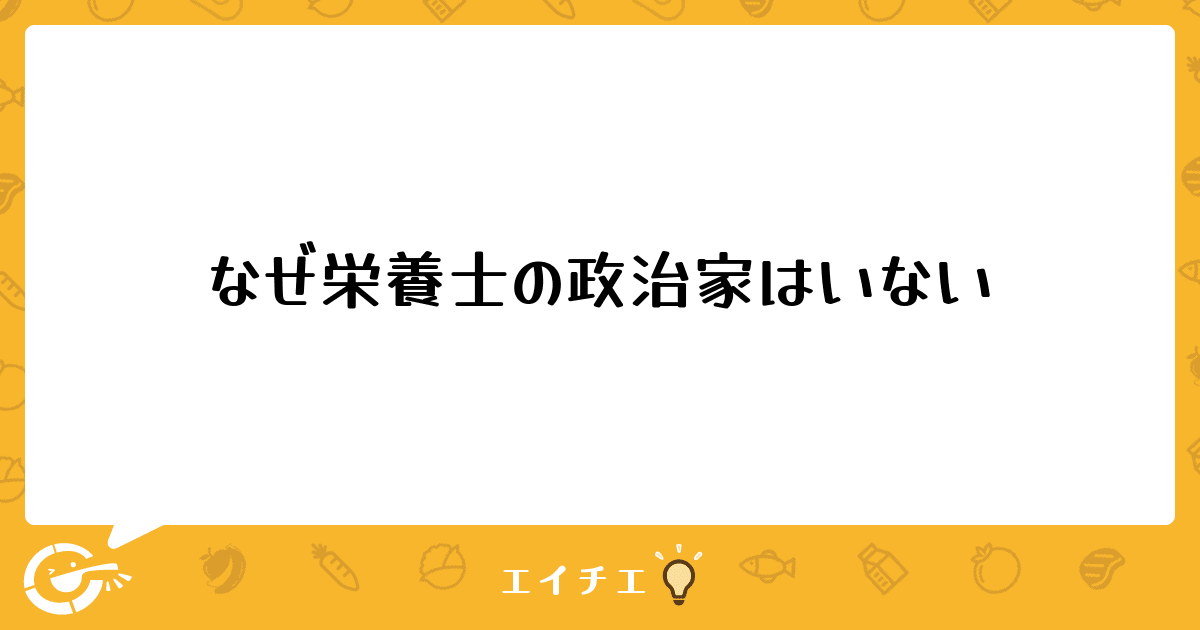 なぜ栄養士政治家はいないのでしょうか・・・・。