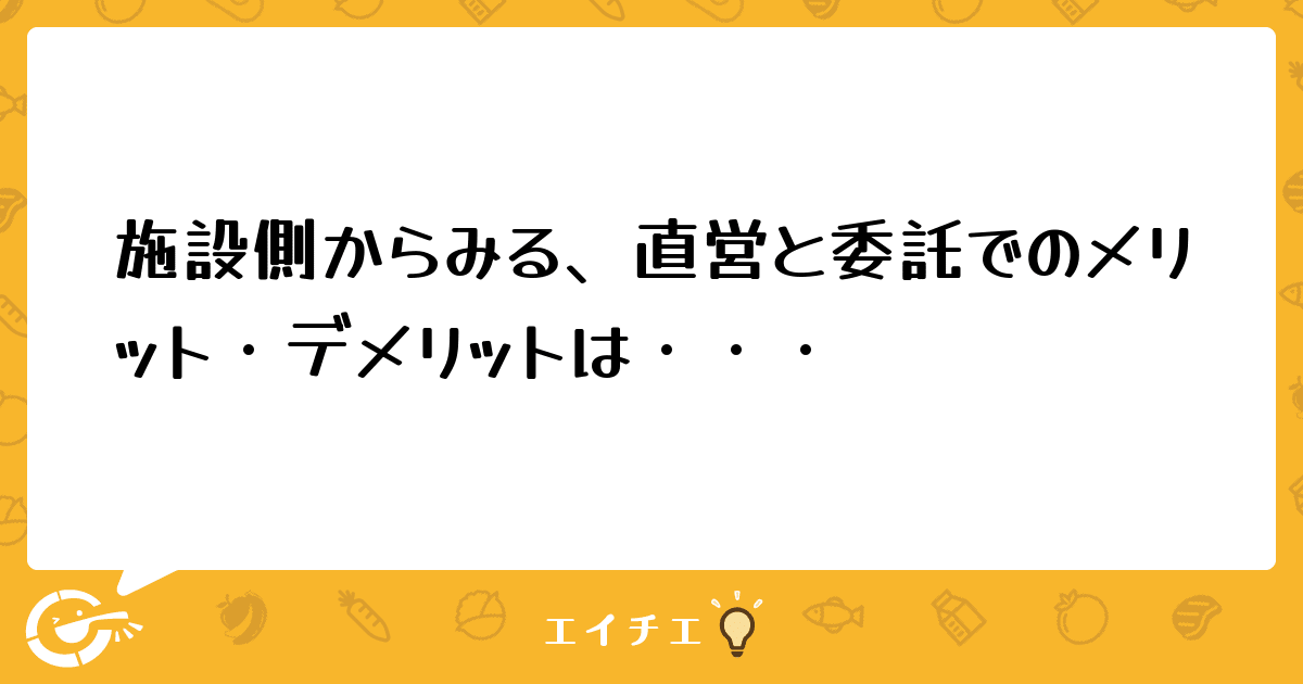 施設側からみた直営と、委託のメリット・デメリットについて聞きたいのですが、皆さんはどう思いますか??☆