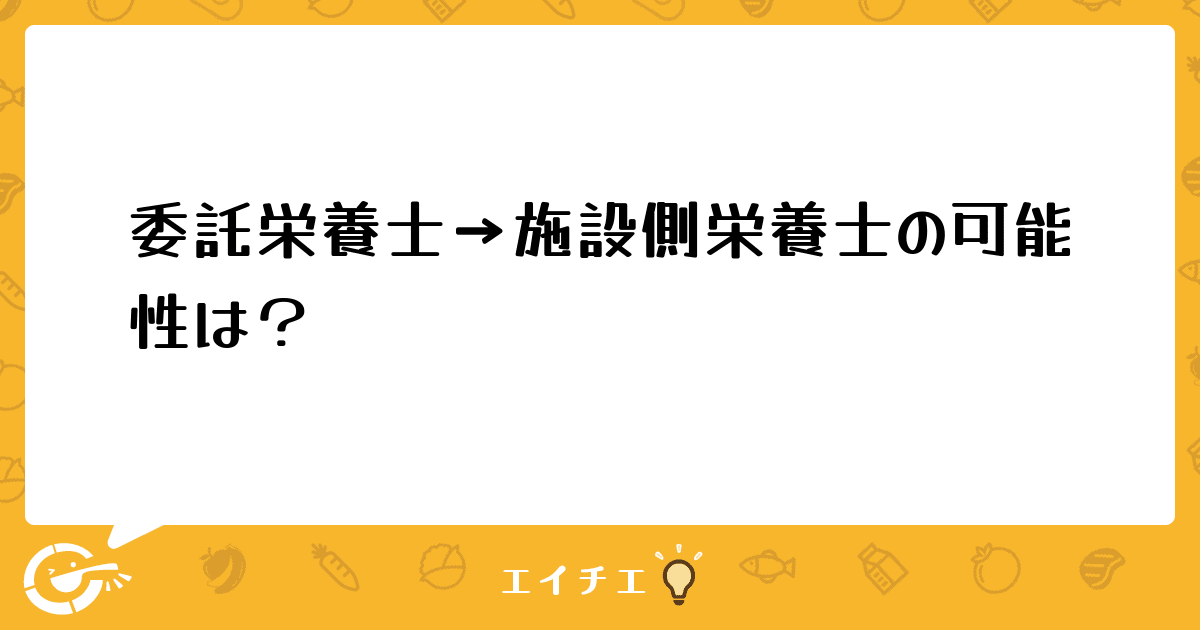 委託側の栄養士をなさっていた方で、同じ施設の施設側の栄養士に転職した方はいらっしゃいますか??(施設側から、声をかけられた方とか・・・)