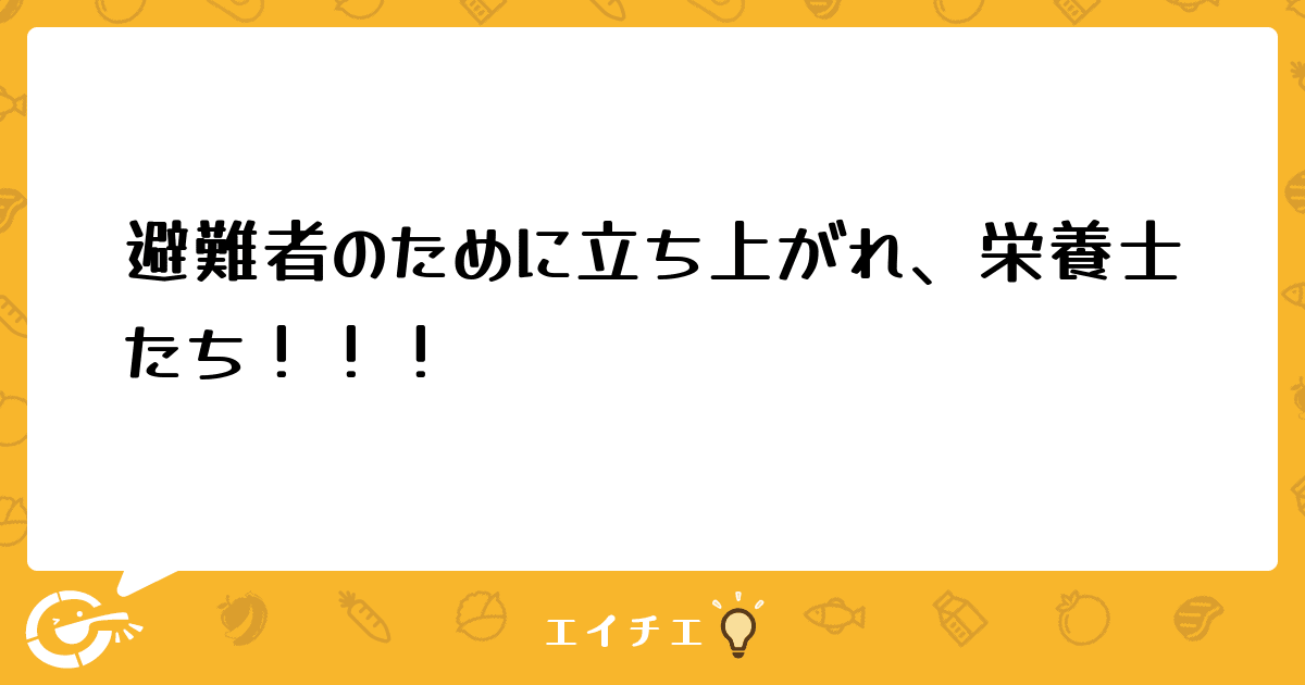 立ち上がれ、日本!立ち上がれ、栄養士達!!