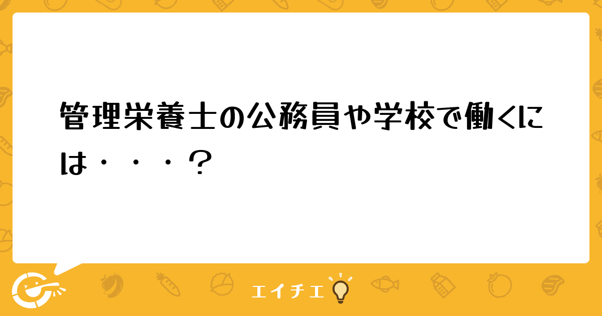今管理栄養士として働くなら、学校か公務員に魅力を感じています。