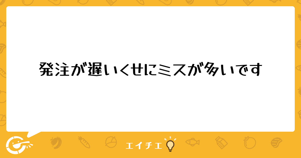 私は老人ホームへ就職して3ヶ月が経とうとしているのですが発注が遅くて一日中かけてやっと10日の発注をしました。上司の管理栄養士は私のあまりの仕事の遅さに驚いて「何でそんなに遅いの?早くできなきゃ仕事が終わらないよ?真面目にやって。」って言われました。