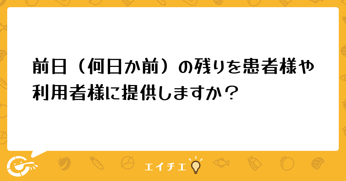いままでに精神病院での委託、福祉業界での栄養業務もしていましたが、前日に提供した料理を冷蔵庫で保管し、次の日に刻み(ミキサー)食に使うってことはなかったのですが、今の職場は使っています。