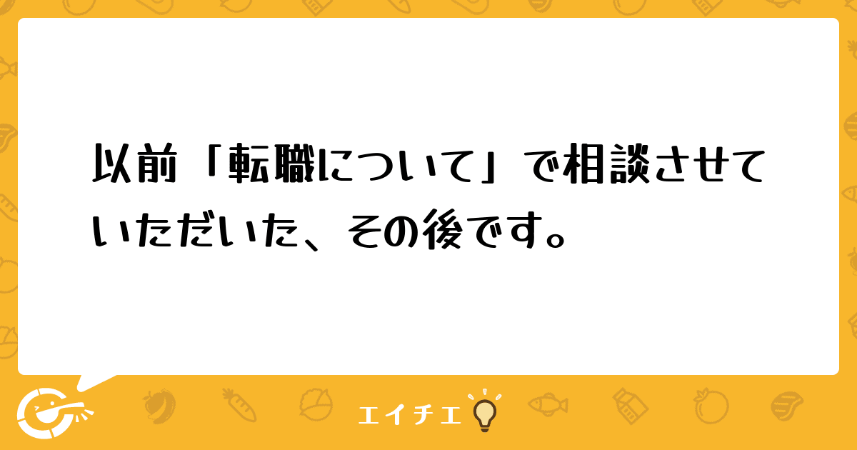 あれから、短期大学の時にお世話になり、働いてからも度々お世話になっているゼミの先生に相談・転職をしたいと話をした所、丁度求人があるとの事でした。さっそく職場見学をさせていただき、面接を受けさせてもらいました。結果、採用通知を頂く事が出来ました。