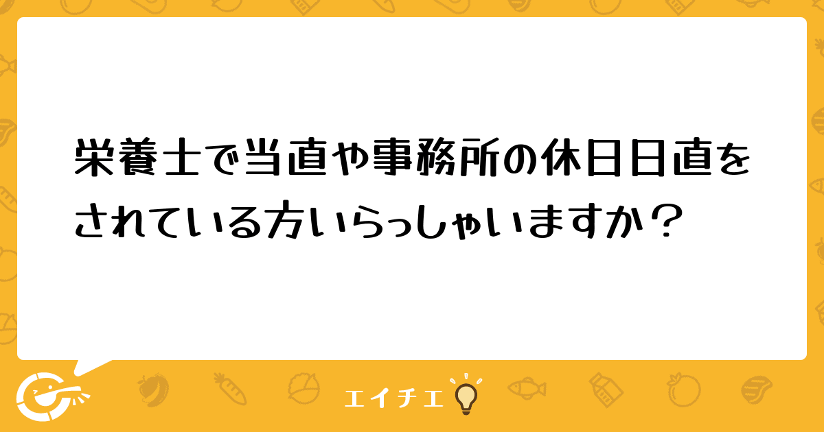 タイトル通り、栄養士さんで事務所の当直や事務所の休日日直をされている方いらっしゃいますか?