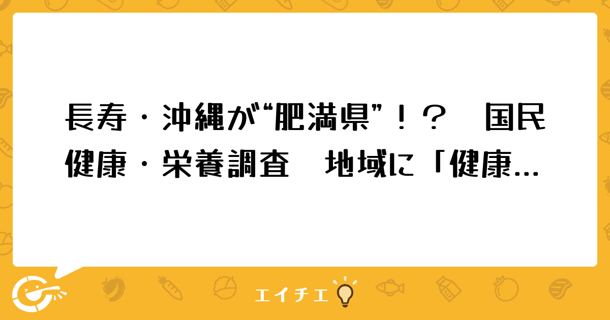 「長寿・沖縄が“肥満県”!? 国民健康・栄養調査 地域に「健康格差」」