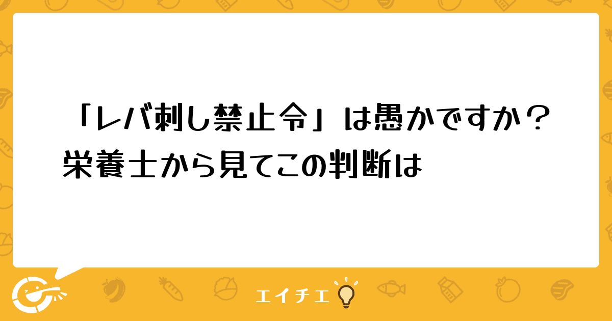 レバ刺しや生レバーを食べている栄養士はおそらくほぼいないと思うが、確かにレバ刺し好きの人にしてみたら大好きなメニューがお店から一切消えてしまうのだからこの上なく残念な事実であろう。