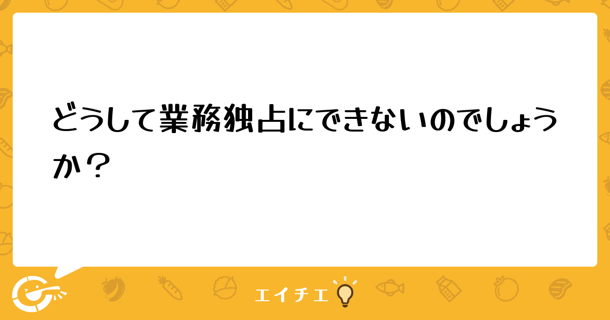 最近の疑問なのですが、何故栄養業務は業務独占にできないのでしょうか?長期的に見れば、栄養指導だって献立作成だって人体に危険が及ぶ可能性だってあるのに。