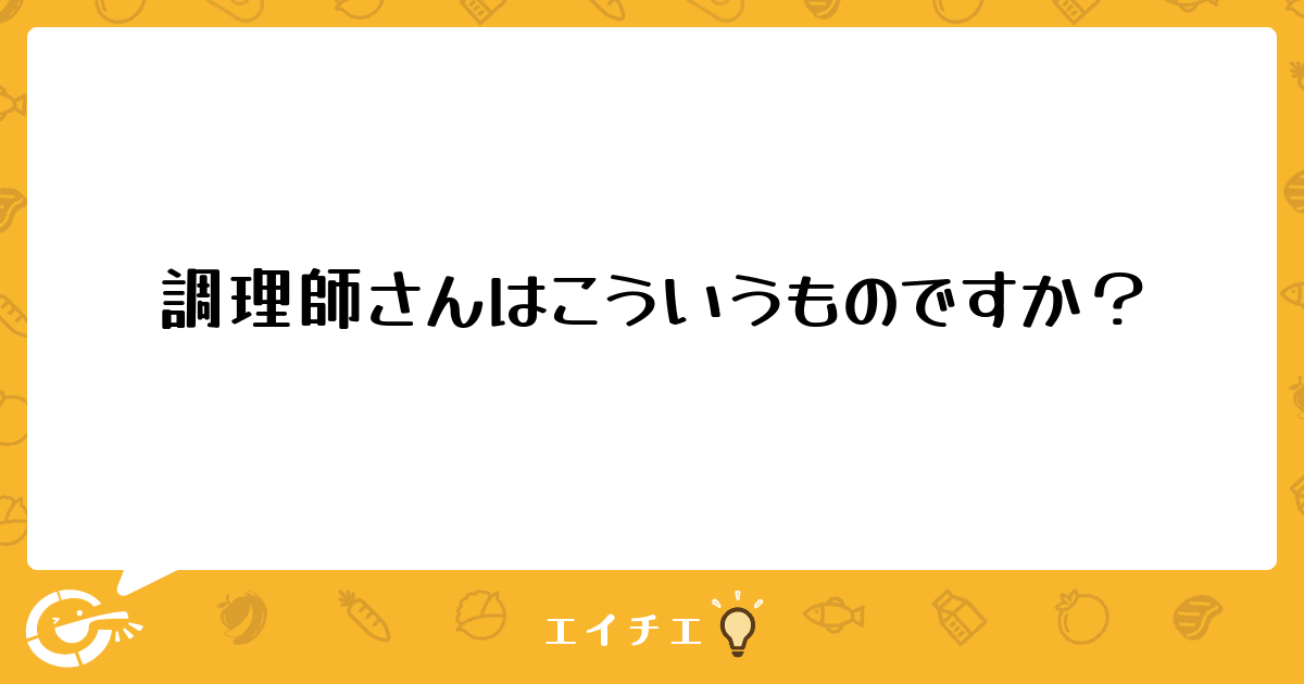 とても嬉しく感じているのですが、調理師さんに悩みがあります。
