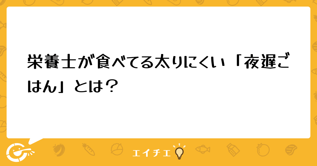糖尿病専門医が教える。太りにくい「夜遅ごはん」とは?