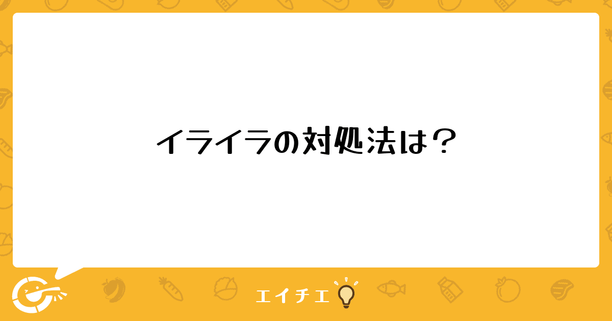 さて、本題に戻ります。皆さんはイライラした時にどうやって対処されて