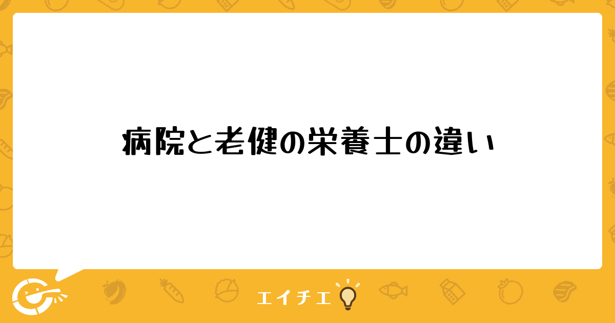 今、病院の栄養士として3年目に入ります。老健と併設で、献立、発注はもう一人の栄養士と交代でしています。同じ法人ですが、なんと言いますか忙しさが全く違うのです。同じミスでも病院はインシデントレポートがいるのに、老健はごめんで済んだり。それではいけないでしょうが。