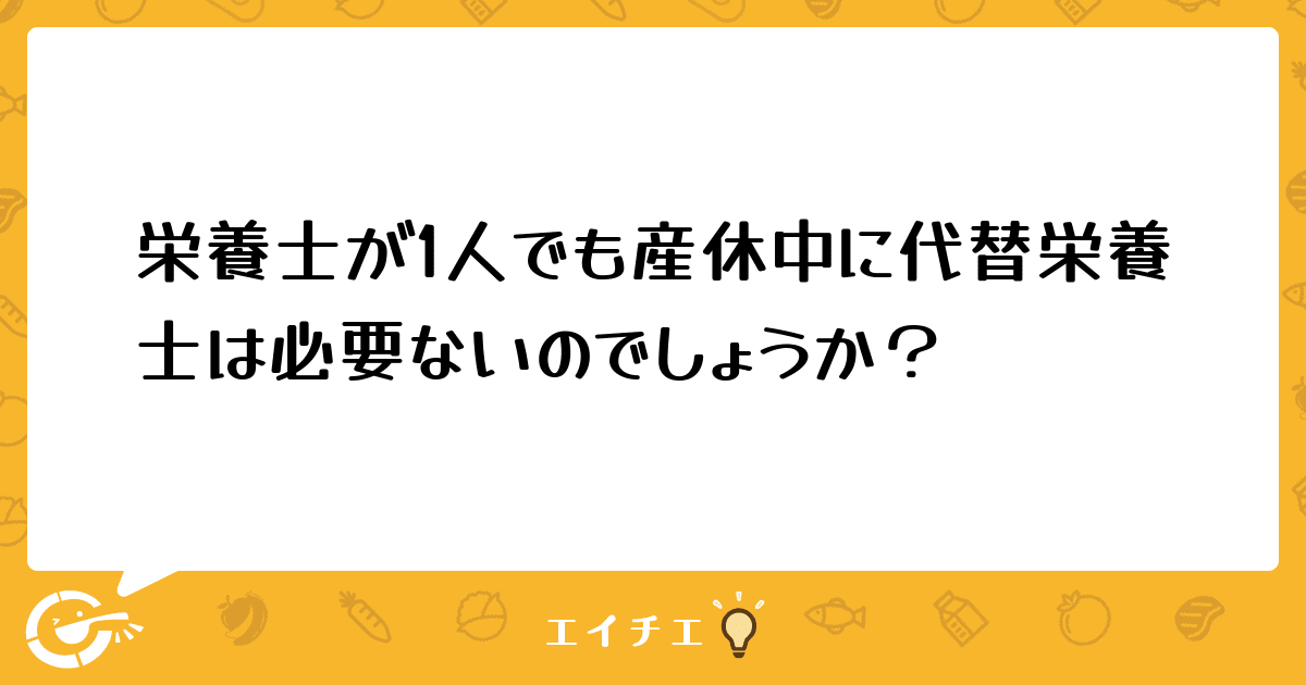 ここで質問なのですが、栄養士が1人の場合、産休取得中には