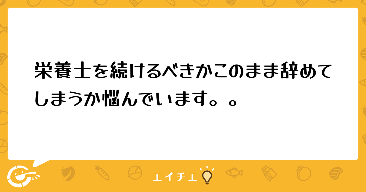 栄養士続けたいって、この想いはただ転職直前の栄養に対する未練なのかな・・?!