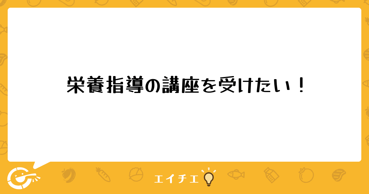 それで、栄養指導の仕方の講座というのがないものか検索したのですが、東京か大阪しか見付からなくて。
