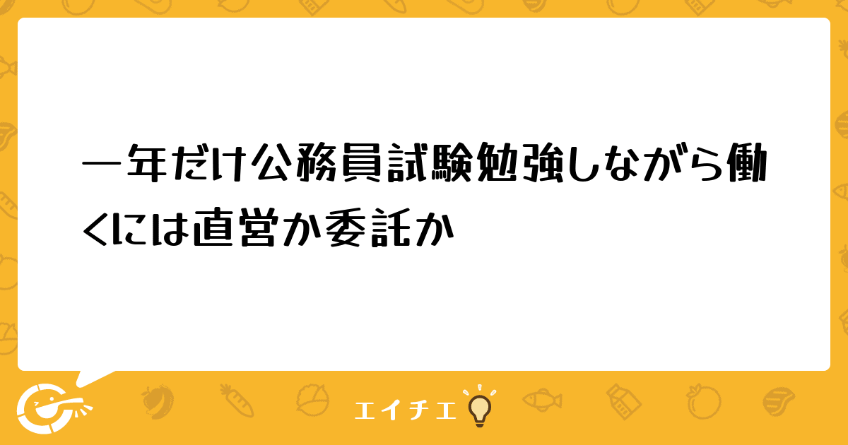 「委託は心理的に...」という点は、先生方から直営を蹴るのはもったいないと言われたこともあり、直営のほうが優秀という気がしていたので、考えを改めたいと思います。