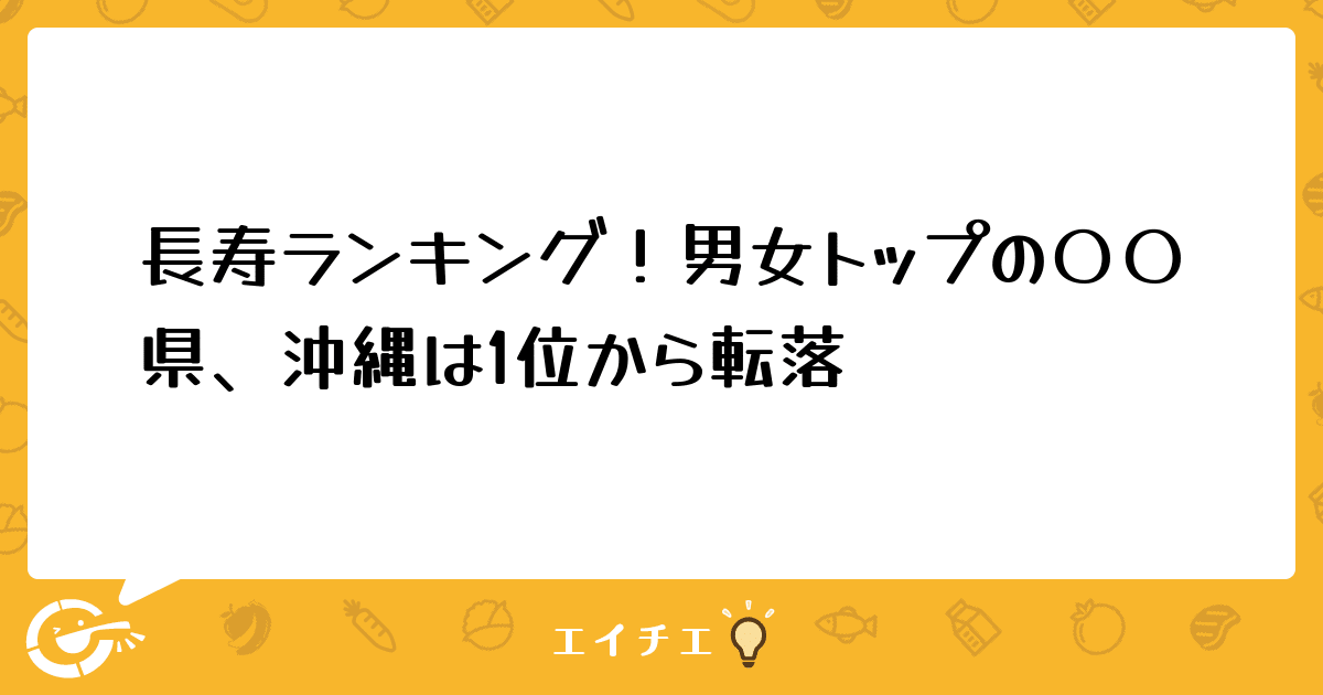 ショックを受けるのは、本土復帰後初めて女性が1位から転落した沖縄。仲井真弘多知事は「長寿世界一復活を目指す県として、結果を厳しく受け止めている」とガックリ。男女とも最下位の青森に至っては、県の担当者が「寿命を延ばす方法があれば教えてほしい」ともはや悲鳴だ。