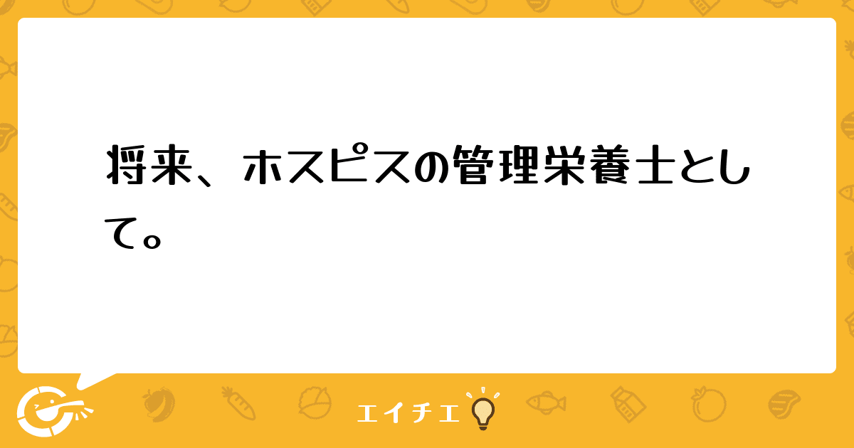 私が、管理栄養士になりたいと思ったきっかは、高校生の時にホスピスで働いている管理栄養士の方の講演会があり、そんな仕事もあるんだ。私も将来、そういった現場で働きたいと思い、管理栄養士養成学校へ進学をしました。