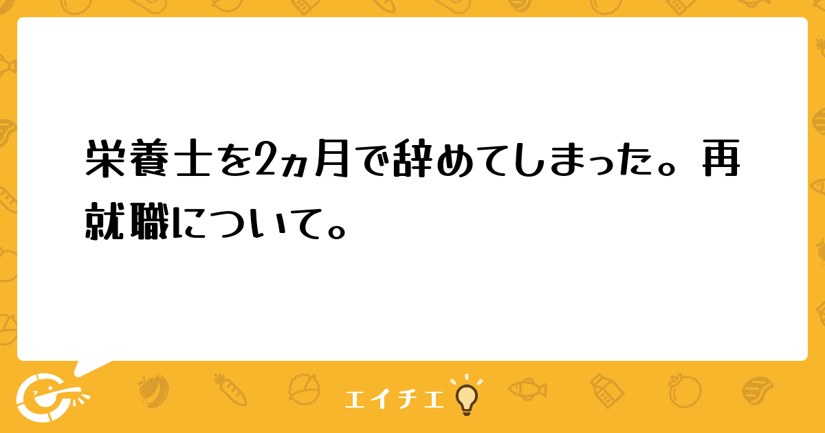 保育園の栄養士として新卒で就職したものですが