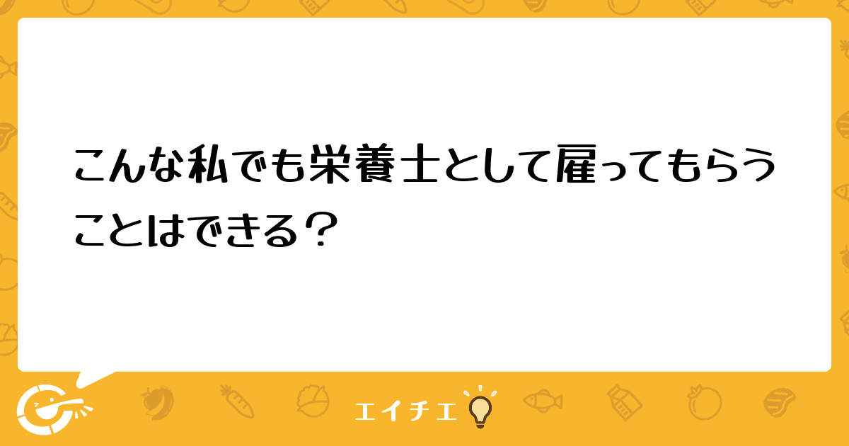 ですが、現在は環境のことについて学んでおり、栄養のことは全く触れてない状況です。約1年半も栄養のことについて勉強をしていなく、即戦力がないため栄養士として雇ってもらうことができるのか不安になってしましました。