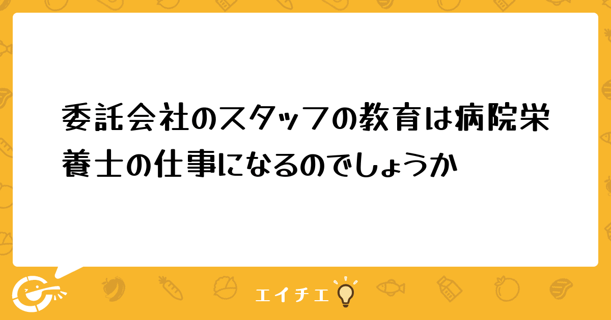 委託会社のスタッフ教育は総括責任者がするべきと思いますが、病院栄養士はどのようにかかわっていったらよいのでしょうか