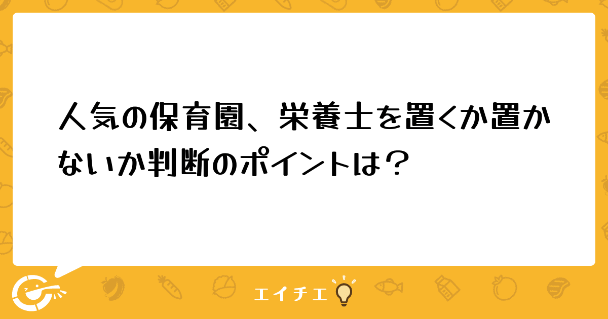 保育園の栄養士ニーズを増やすにはどうすればいいのでしょうか。