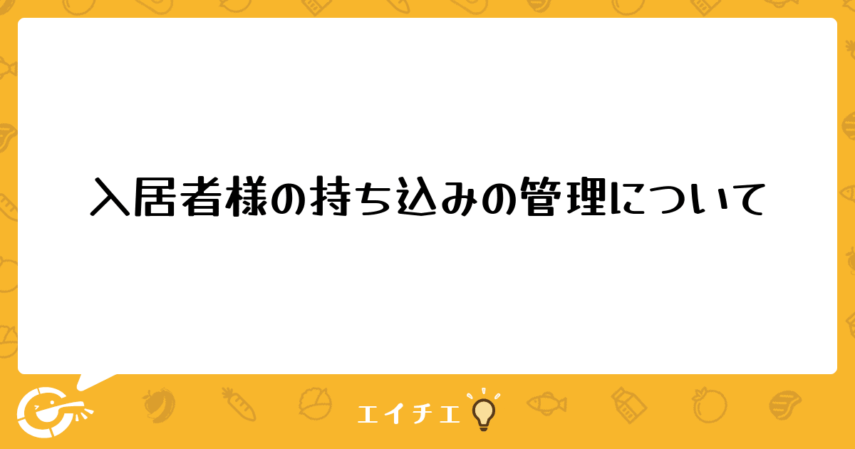 本日お伺いしたいのは入居者様の持ち込みに関してです。