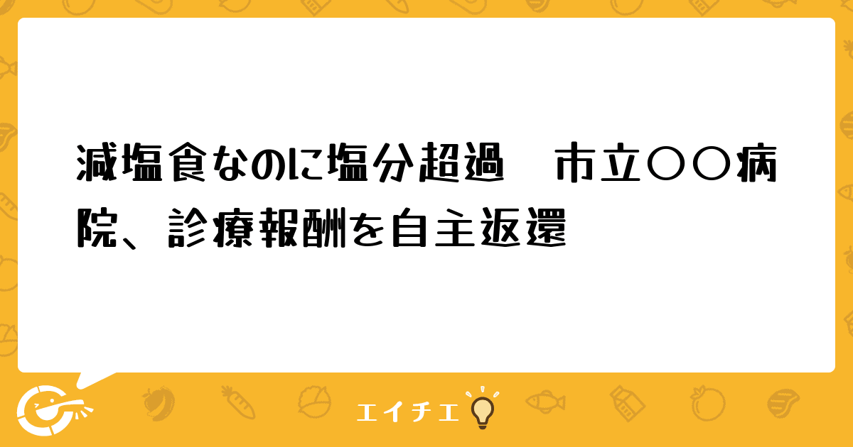 "市立○○病院は24日、1年以上、病院食の一部で規定を超える塩分を使用したとして、診療報酬の特別食加算分約600万円を健康保険組合などに自主返還したことを明らかにした。