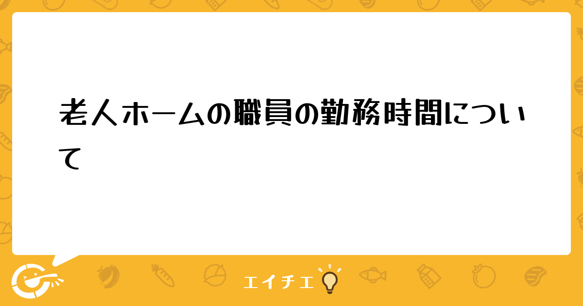 私は養護老人ホームに勤務しており、月曜日から金曜日まで朝8時30分から夕方5時15分までに勤務です。