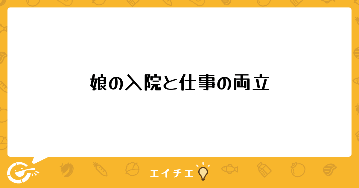 今は、夜間は母親である私が付き添いで入院し、日中は主人と一日交代で休みを取って、仕事と両立しています。