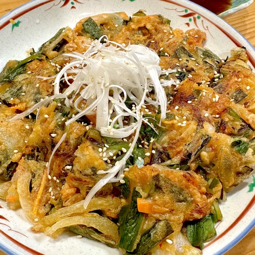 カリッと焼けた生地の中に、キムチ・にら・にんじん・玉ねぎがたっぷり🥕✨手作りコチュジャンだれで頂きました!