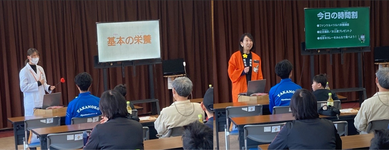 そうした座学の後、玄米を独自製法でゆっくり発芽させたファンケルの発芽米のカレーを全員で試食。参加者からは「発芽米は初めて食べたけれどおいしかった」、「発芽米は噛むと甘くカレーとの相性が良い」といった声が寄せられた。