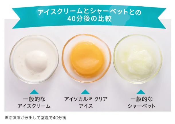 冷たいアイスの場合、バニラなどの風味製品が多いが、「アイソカル クリア アイス みかん味」は、その名の通りみかん風味で脂肪ゼロのすっきりタイプ。ゆっくり誰もが、気持ちよく口にしやすいとされる。