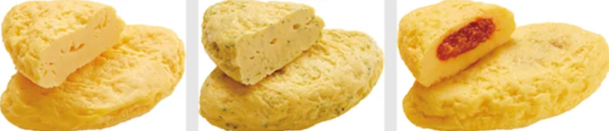 さらに商品として、オムレツ表面をよりなめらかに仕上げ、手作りらしい美味しそうな形状へと進化した。シリーズには、さまざまなソースに合うようシンプルな味付けでふんわりと仕上げた「プレーン」をはじめ、ほうれん草を加えて彩りよく仕立てた「ほうれんそう」、トマトとひき肉のソースを包んで焼き上げた「トマトミート」の3タイプがある。