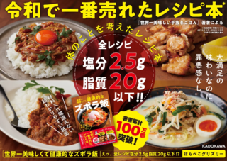 株式会社KADOKAWA(以下、KADOKAWA)は、人気料理研究家・はらぺこグリズリー氏による新刊『世界一美味しくて健康的なズボラ飯 えっ、全レシピ塩分2.5g脂質20g以下!?』を、11月28日に発売した。