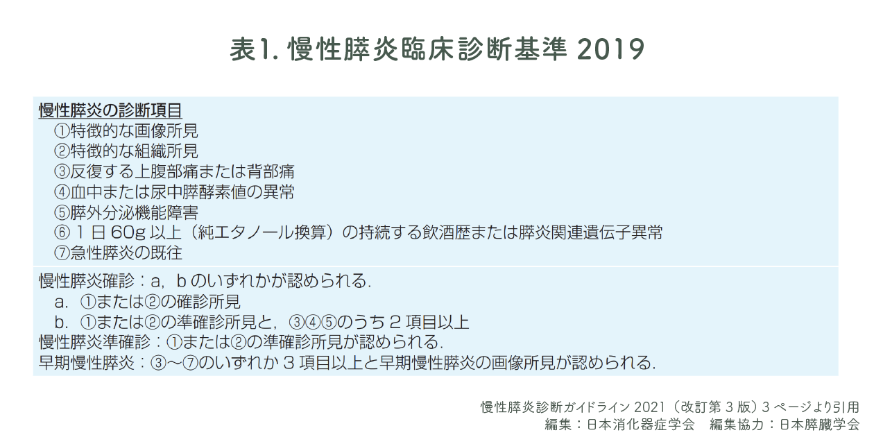 下瀬川徹(研究代表者)ほか:厚生労働科学研究成果データベース「慢性膵炎の診断基準・重症度判定基準の確立に関する研究」平成22年度報告書.