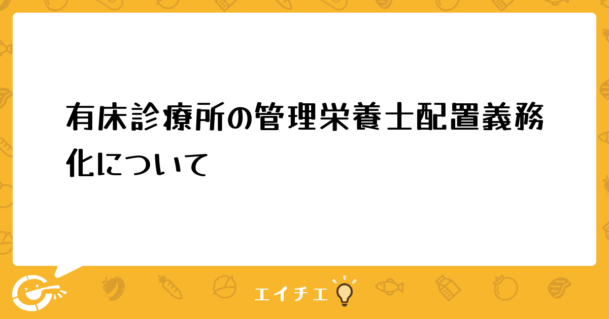 平成26年4月より有床診療所に管理栄養士配置義務化の話がありましたが、