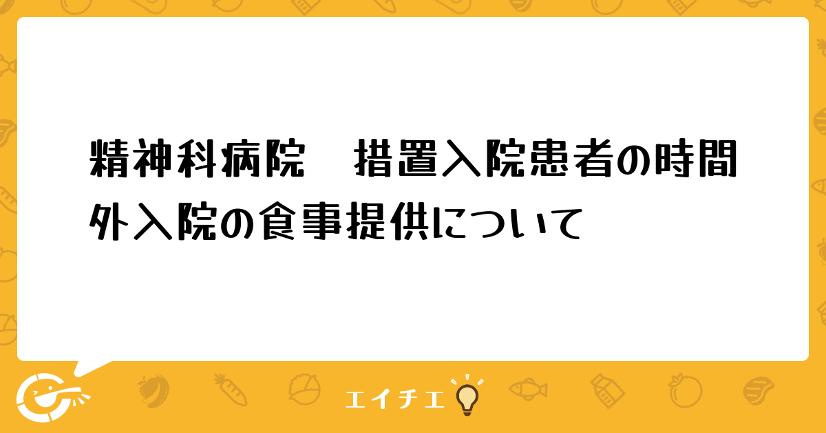 不安になりましたので、措置入院の患者さんがよく入院される病院で、同じように、夜間帯に食事を提供しているところや、何か、栄養課で対応されているところがありましたら、アドバイスいただければと思い、質問させていただきました。