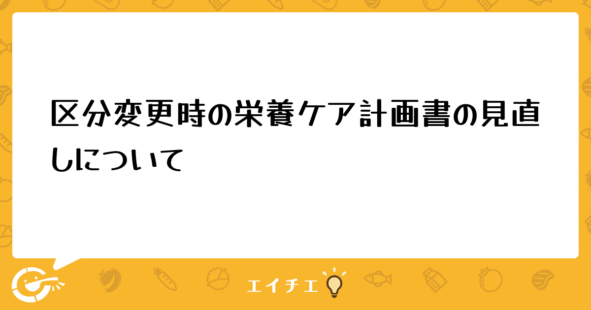 栄養ケアマネジメントのことで質問したいのですが、ケアプランは区分変更時に見直しを行いますが、食形態や食事摂取量などに変化がない場合も区分変更時に栄養ケア計画書を見直しするものなのでしょうか?