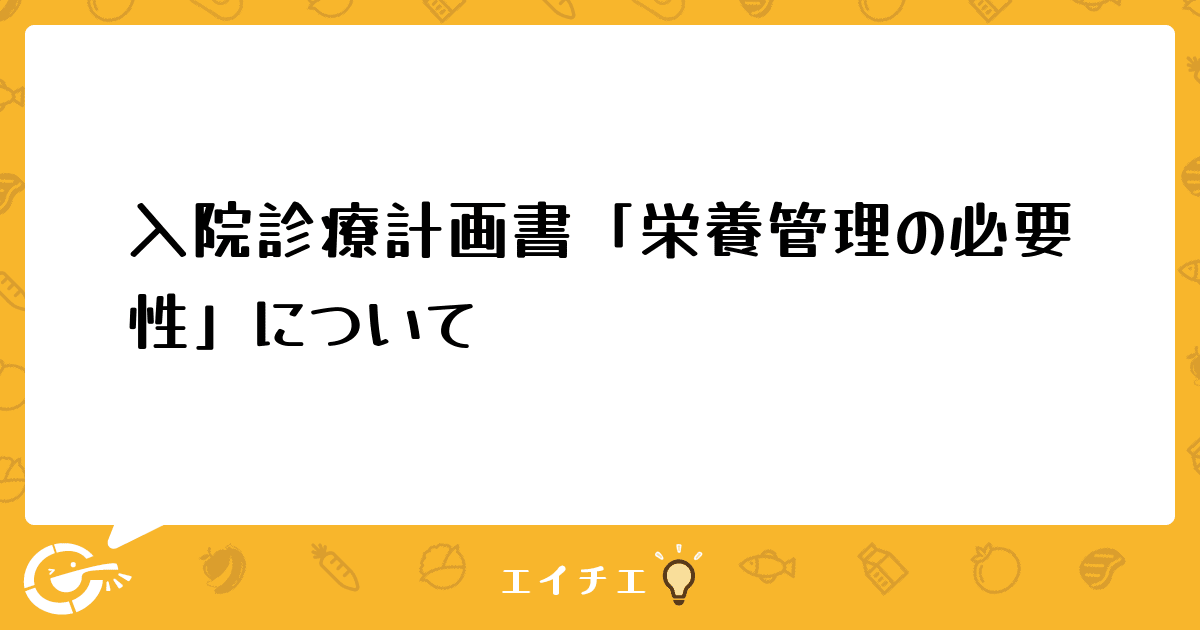 入院診療計画書にある「特別な栄養管理の必要性」という項目は、全患者「有」とお願いしていたのですが、最近新任医師も入ったためか「無」とされることがあります。
